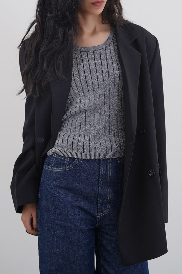 Design details: Scoop-neck tank top with ribbed trims at armhole, neck, and bottom hem.