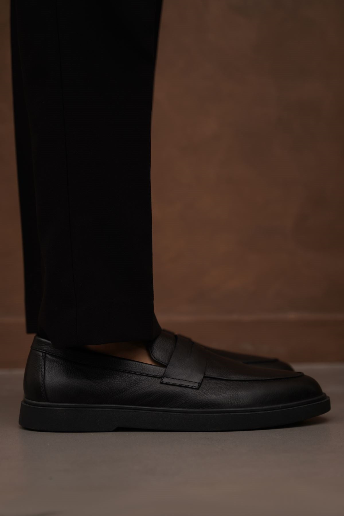 100% genuine natural milled leather loafers with a penny strap, soft leather insole, and anti-slip flat TPR outsole.
