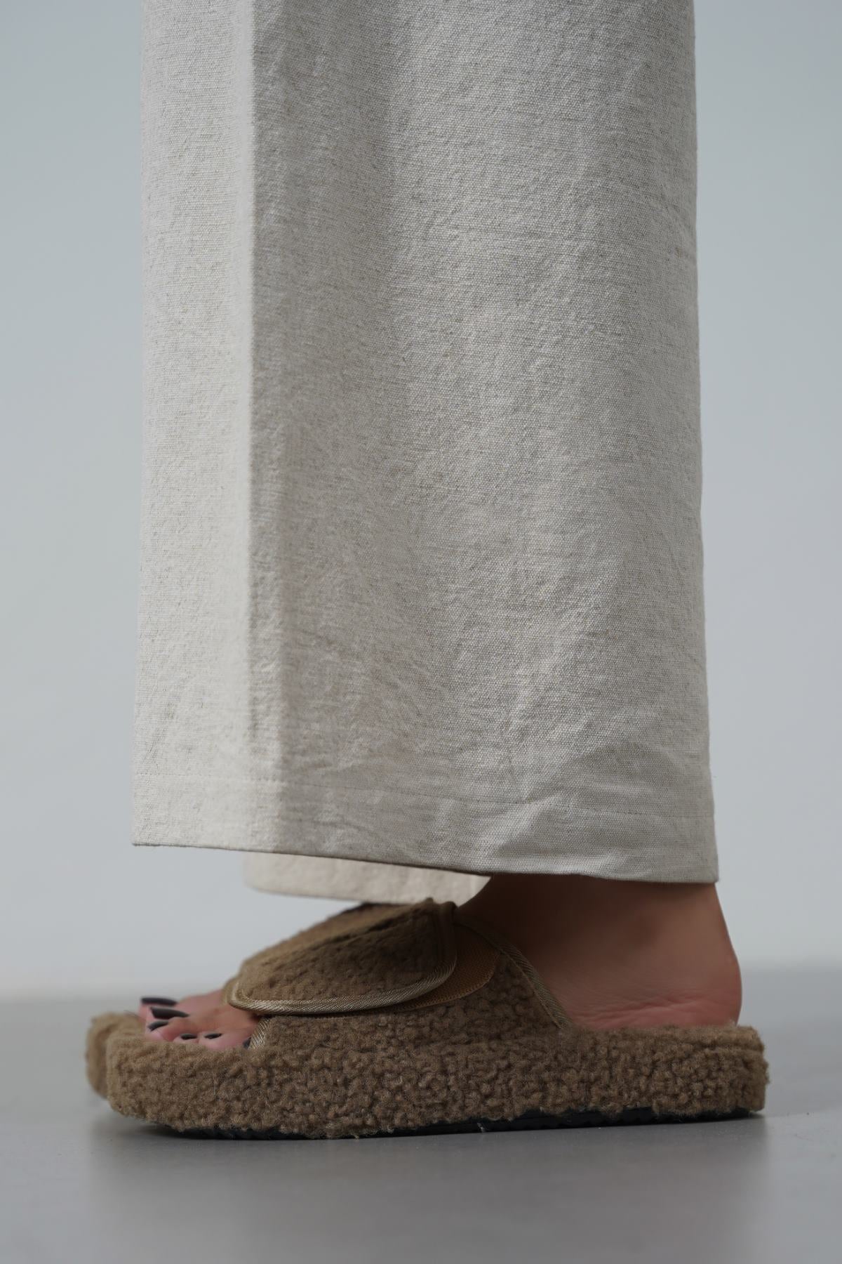 KHAKI TEDDY FUR SLIDES