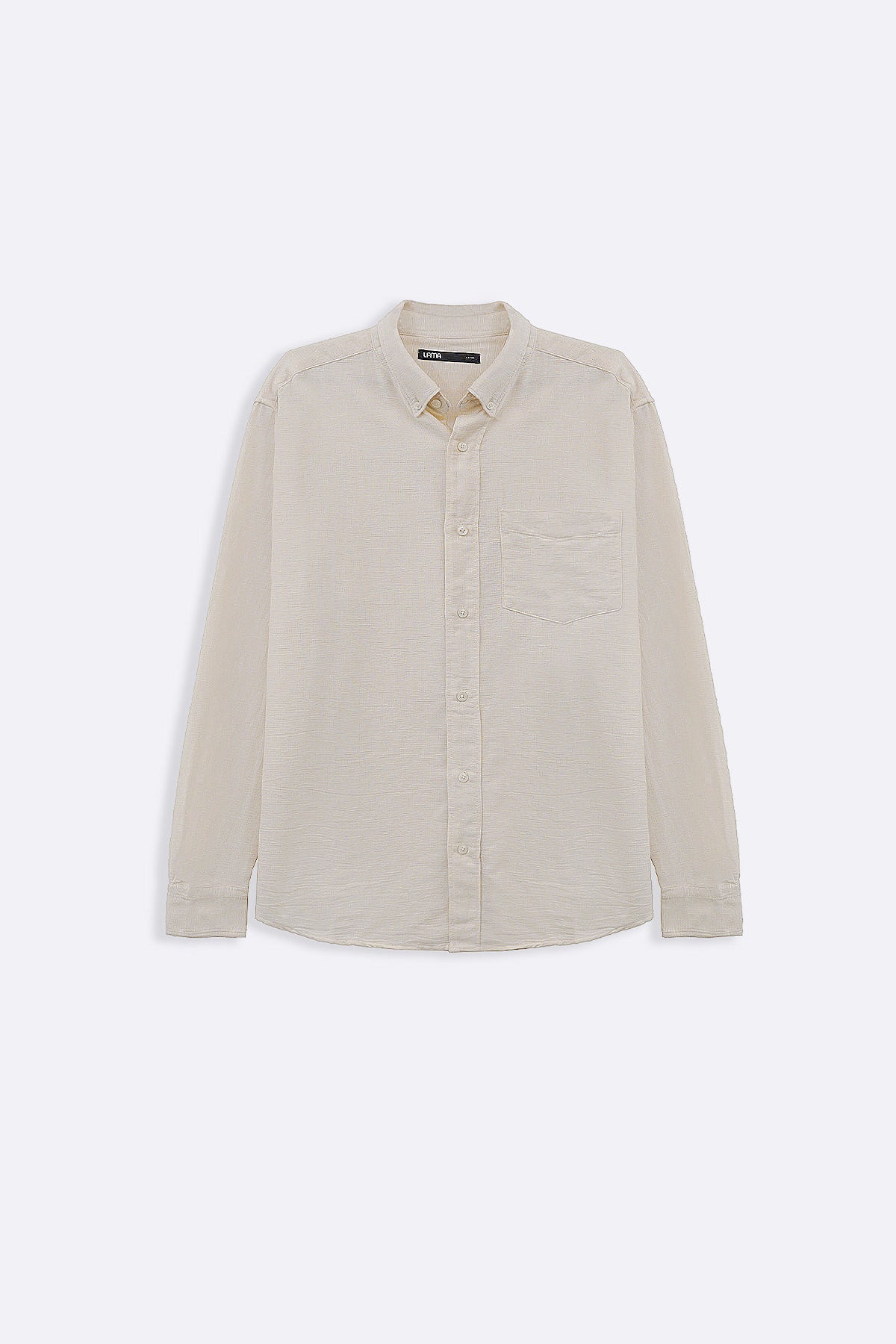 Design details: Dobby button down shirt with a chest patch pocket, collar and full sleeves with cuffs.
