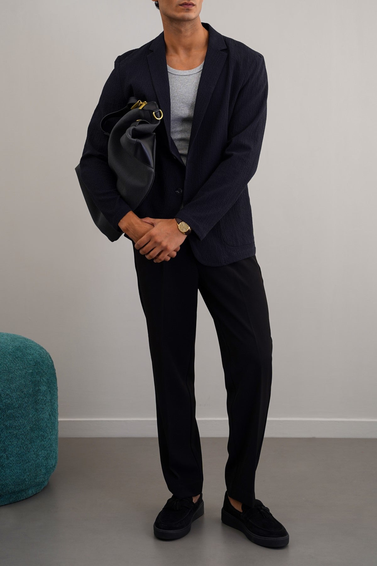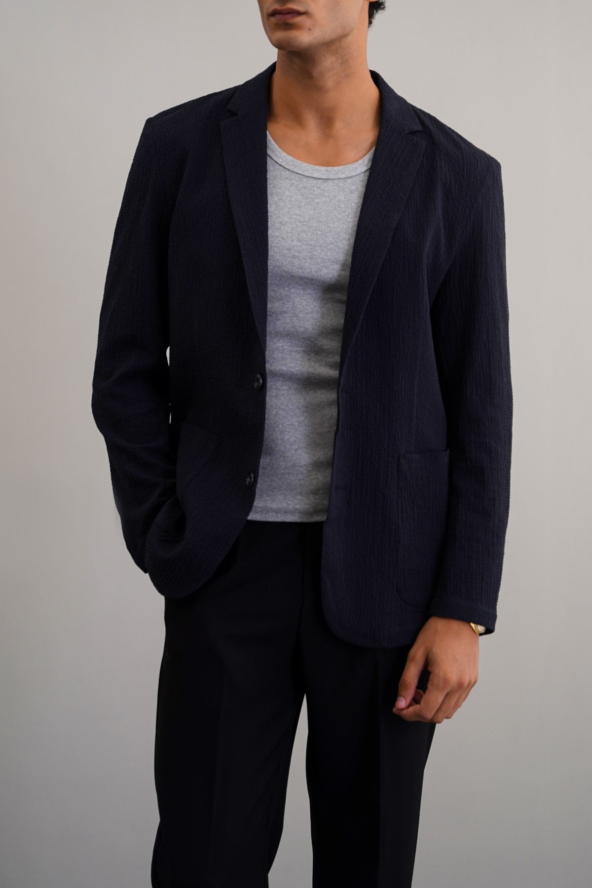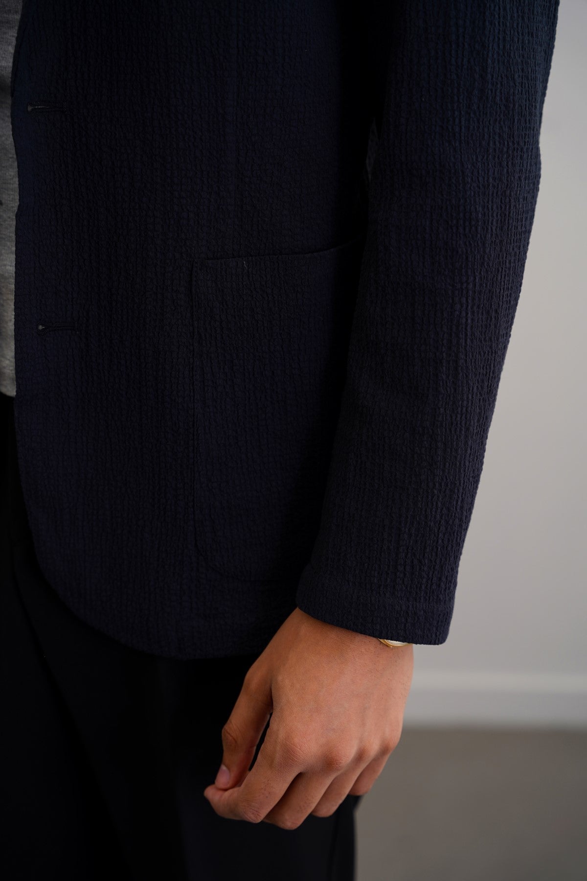 Design details: Light-weight, non-structured, single-breasted blazer with half lining and side patch pockets. Front button closure and a single rear vent.