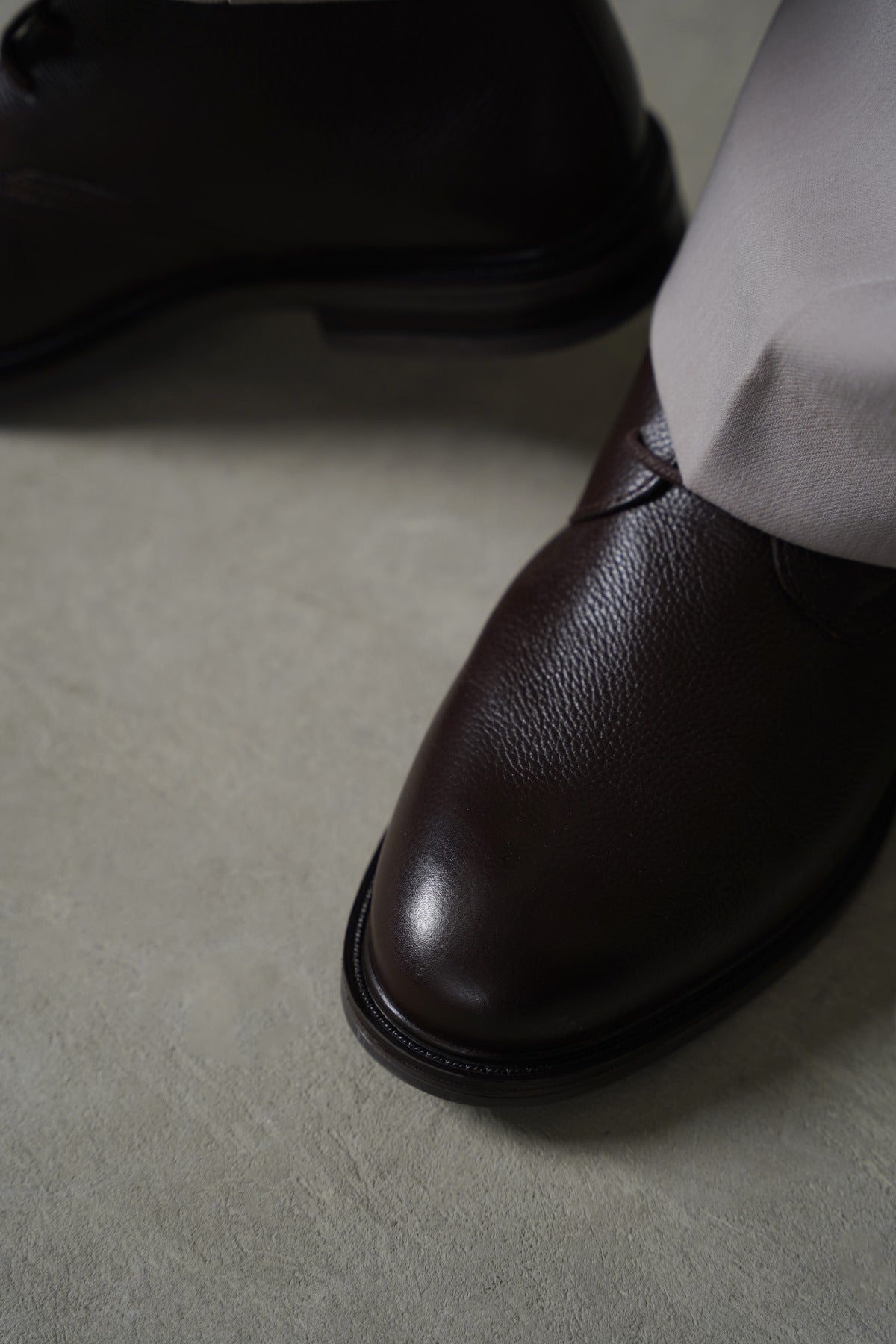 100% genuine grained leather lace up chukka boots with round waxed laces, soft leather insole, and anti-slip TPR outsole.