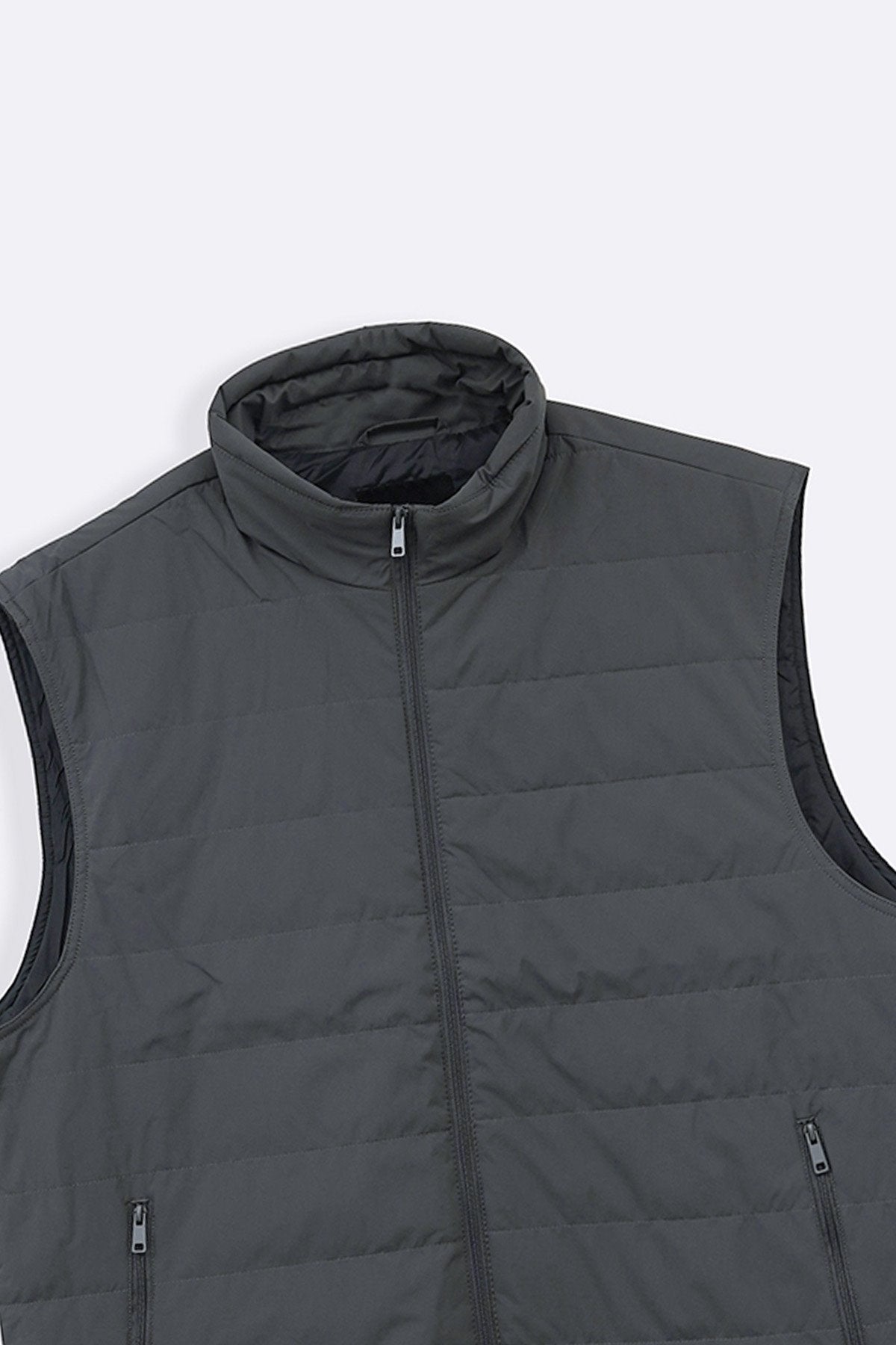 Design details: Light weight puffer gilet with a mock neck, two zip-up pockets and a front zip closure.