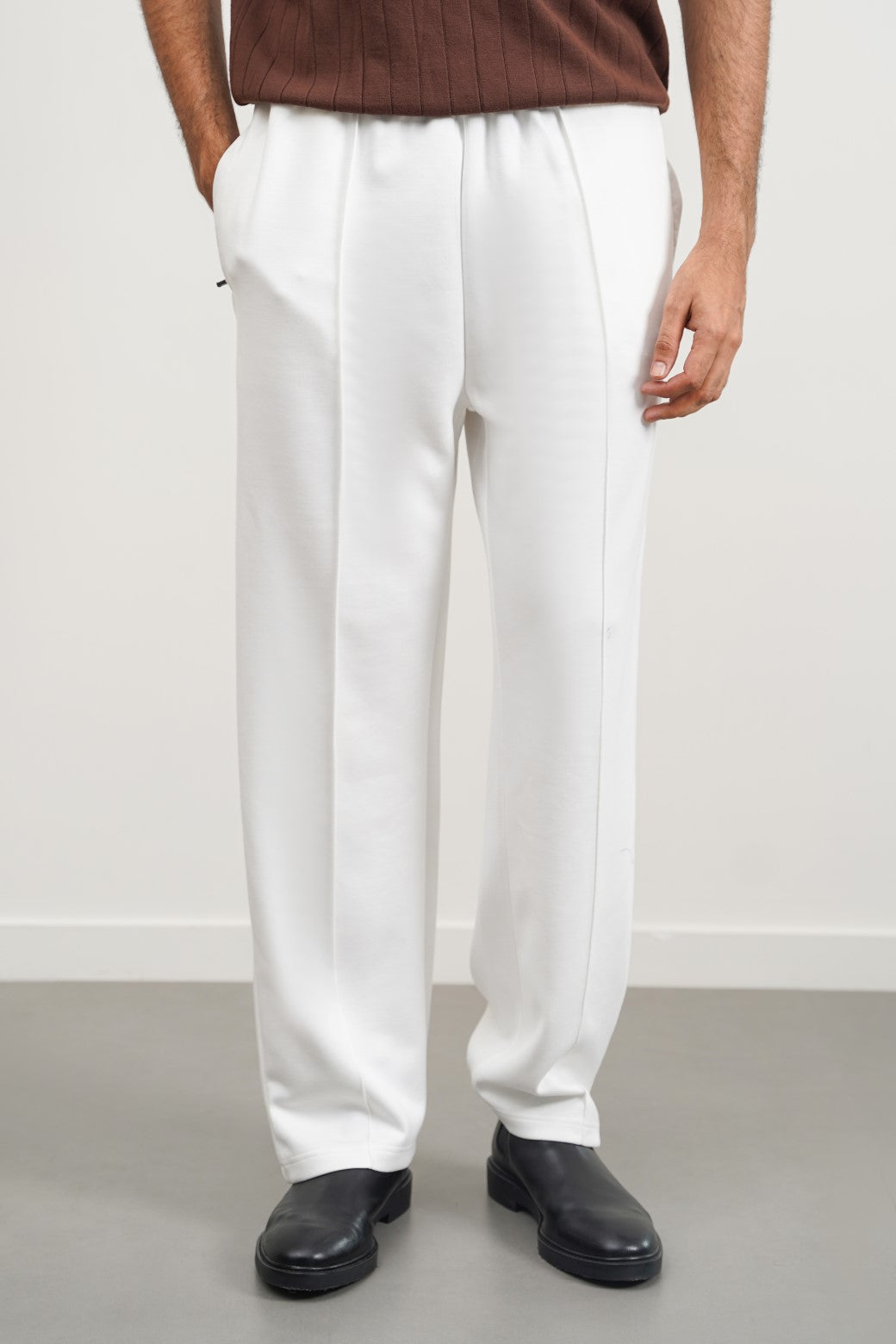 Knitted pants with front seam detail.