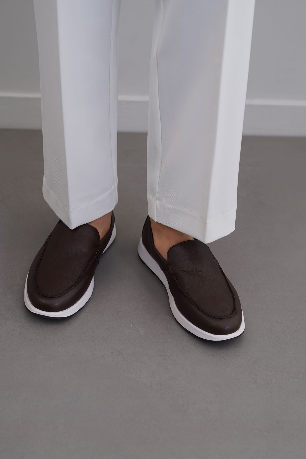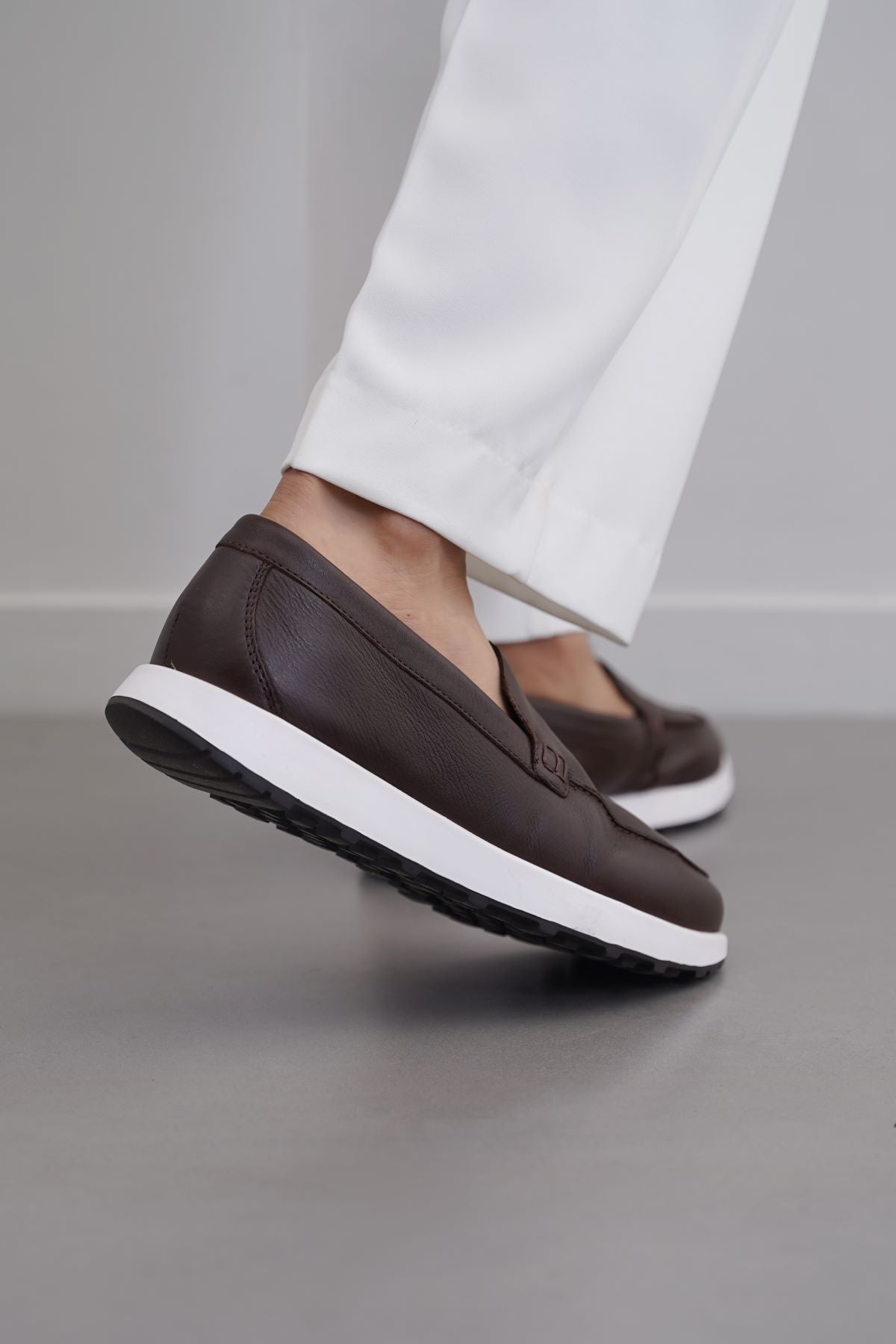 Design details: Comfortable leather slip-on loafers, with soft leather insole and contrast anti-slip and light weight EVR outsole.