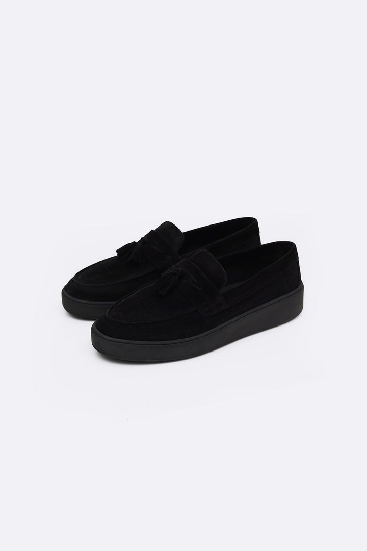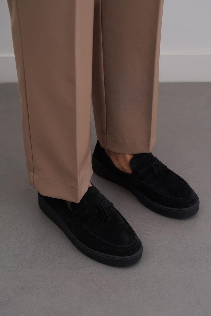 BLACK SUEDE LEATHER TASSEL LOAFERS