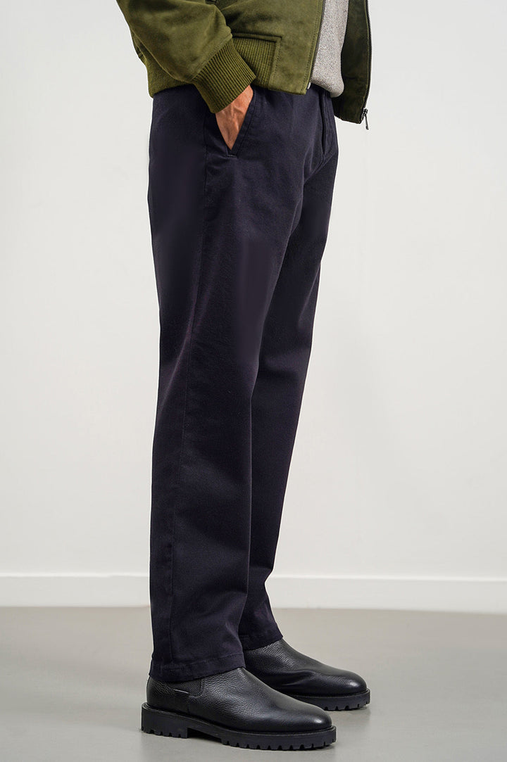 Design details: Straight fit pants with side pockets, pleats at front, back bone pockets and zipper fly closure.