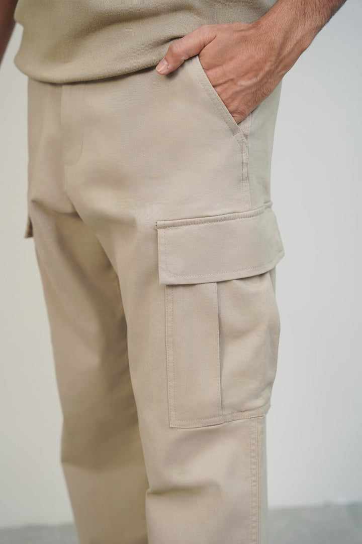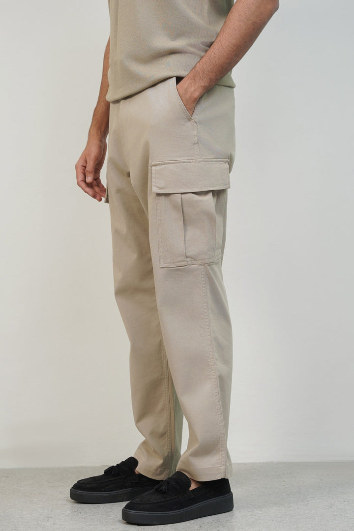 Design details: Relaxed fit Cargos with six pockets, elasticated waist band and a draw cord.