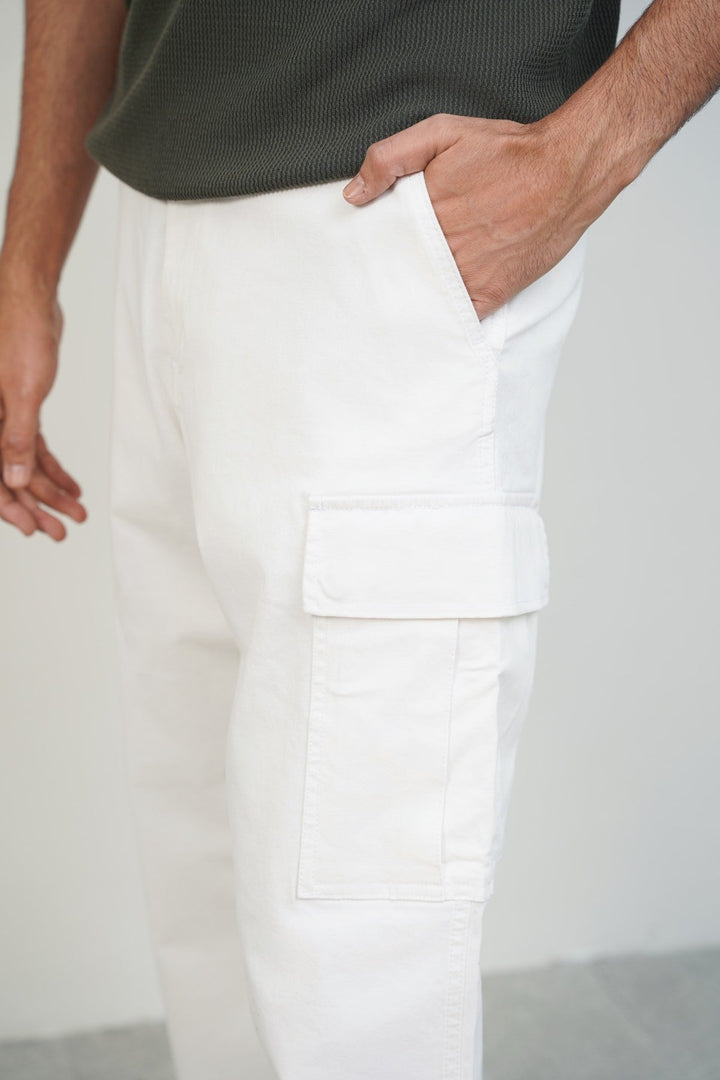 Design details: Relaxed fit Cargos with six pockets, elasticated waist band and a draw cord.