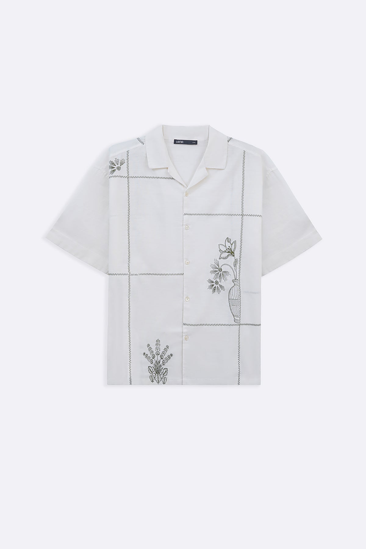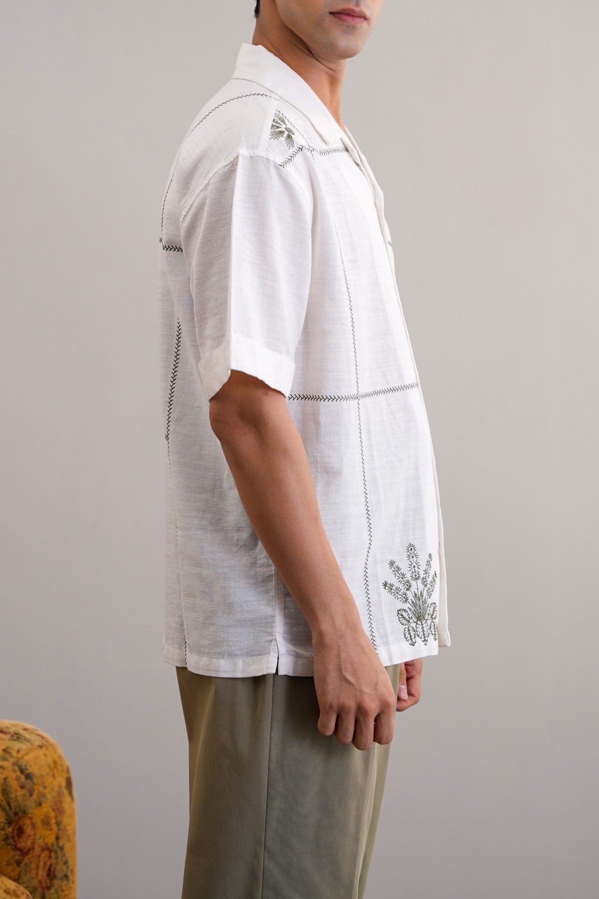 Design details: Embroidered safari half sleeves shirt with turn-up detail.