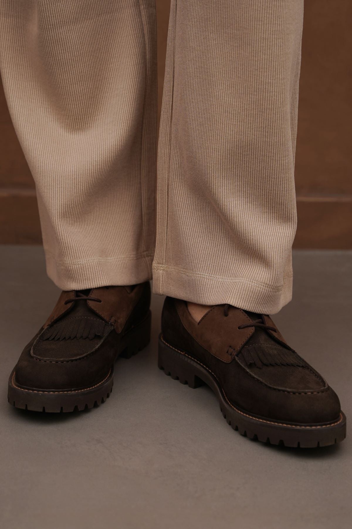 100% genuine grained leather moc-toe casual shoes with comfortable leather insole and chunky anti-slip TPR outsole.