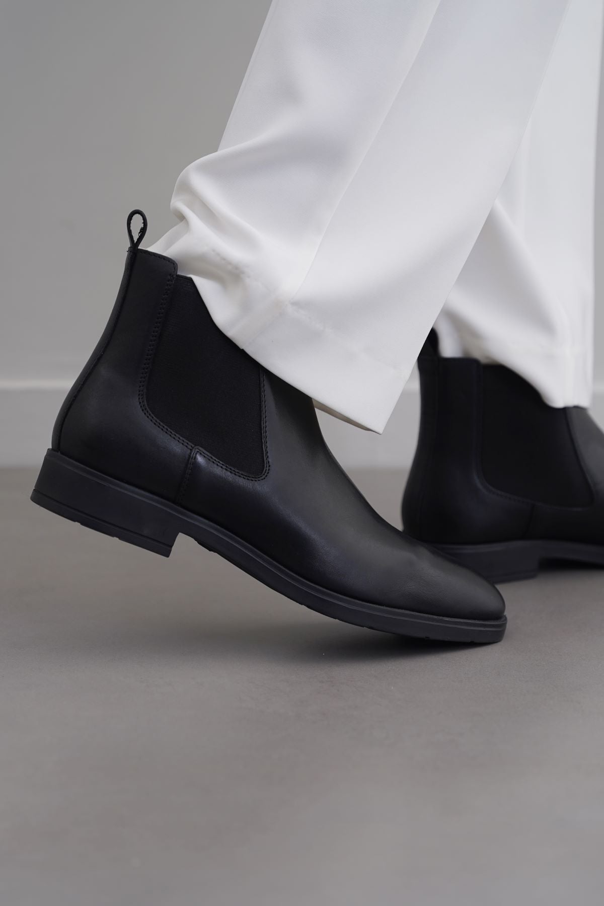 Design details: Classic leather Chelsea boots with elasticated side panels and pull tabs, designed with a sleek outsole for comfort and durability.