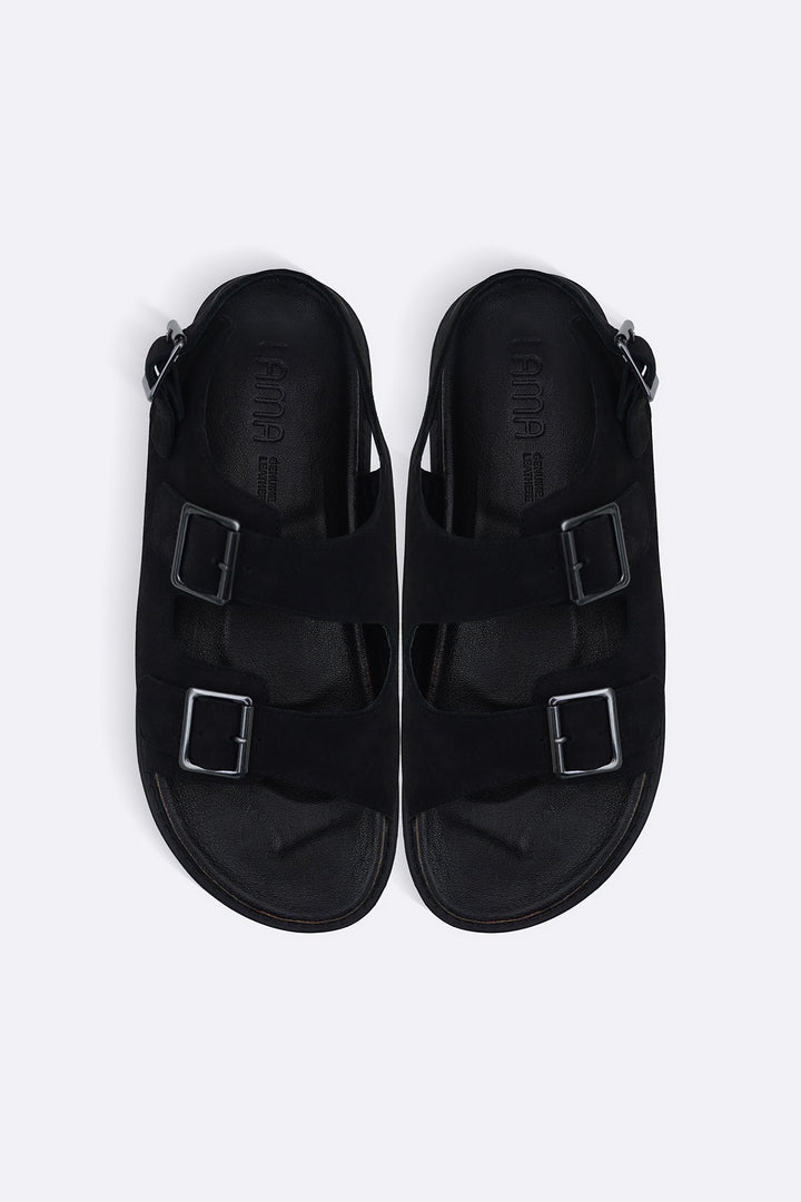 100% genuine nubuck leather sandals with double buckles for size adjustment and comfortable insole.
