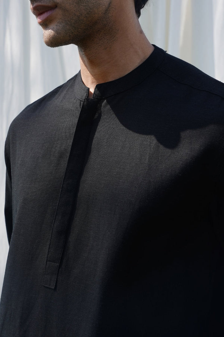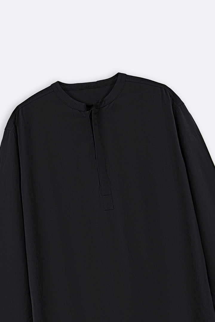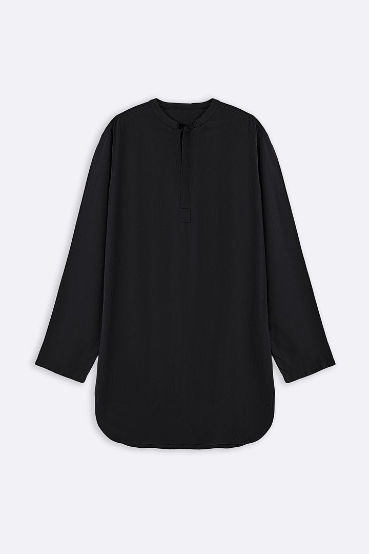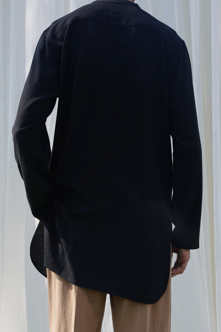 BLACK LINEN BLEND LONG SHIRT