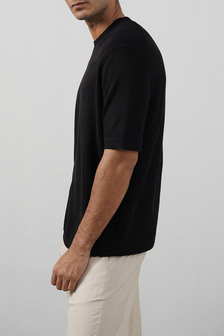 Design details: Crew neck t-shirt made from a viscose blend fabric featuring ribbed details on neck,cuffs and hem.