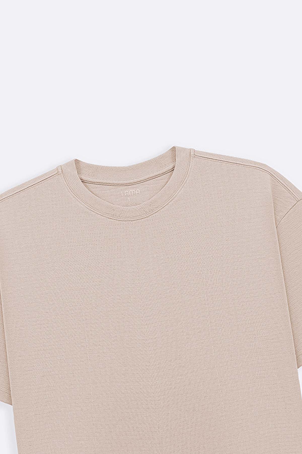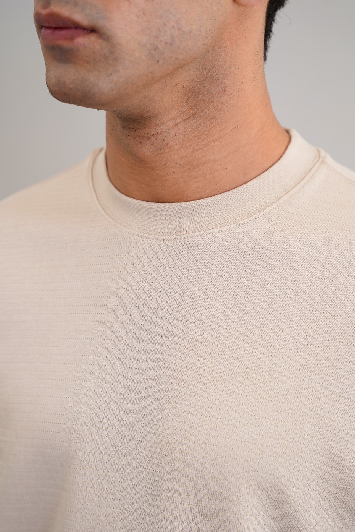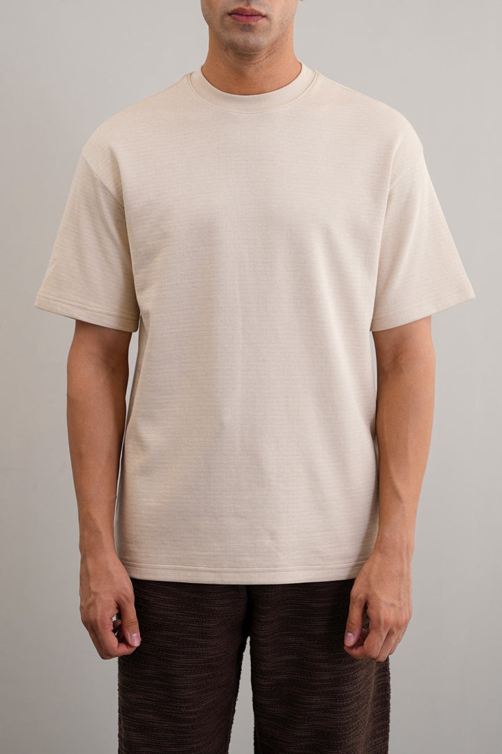 Design details: Jacquard tee with crew neckline and short sleeves along with ribbed trims
