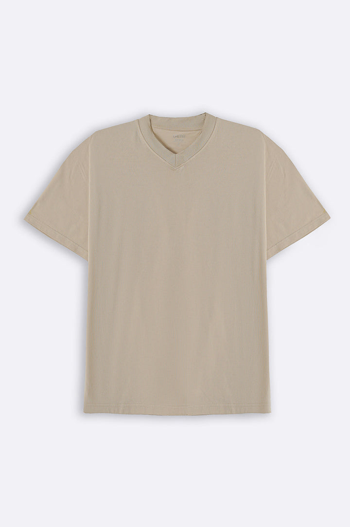 Design detail: Loose-fitting T-shirt made of cotton. V- neck and short sleeves.