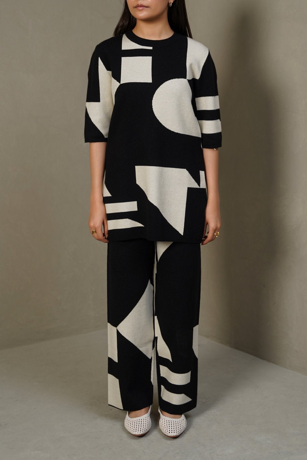 BLACK CREAM COLORBLOCK SWEATER PANTS