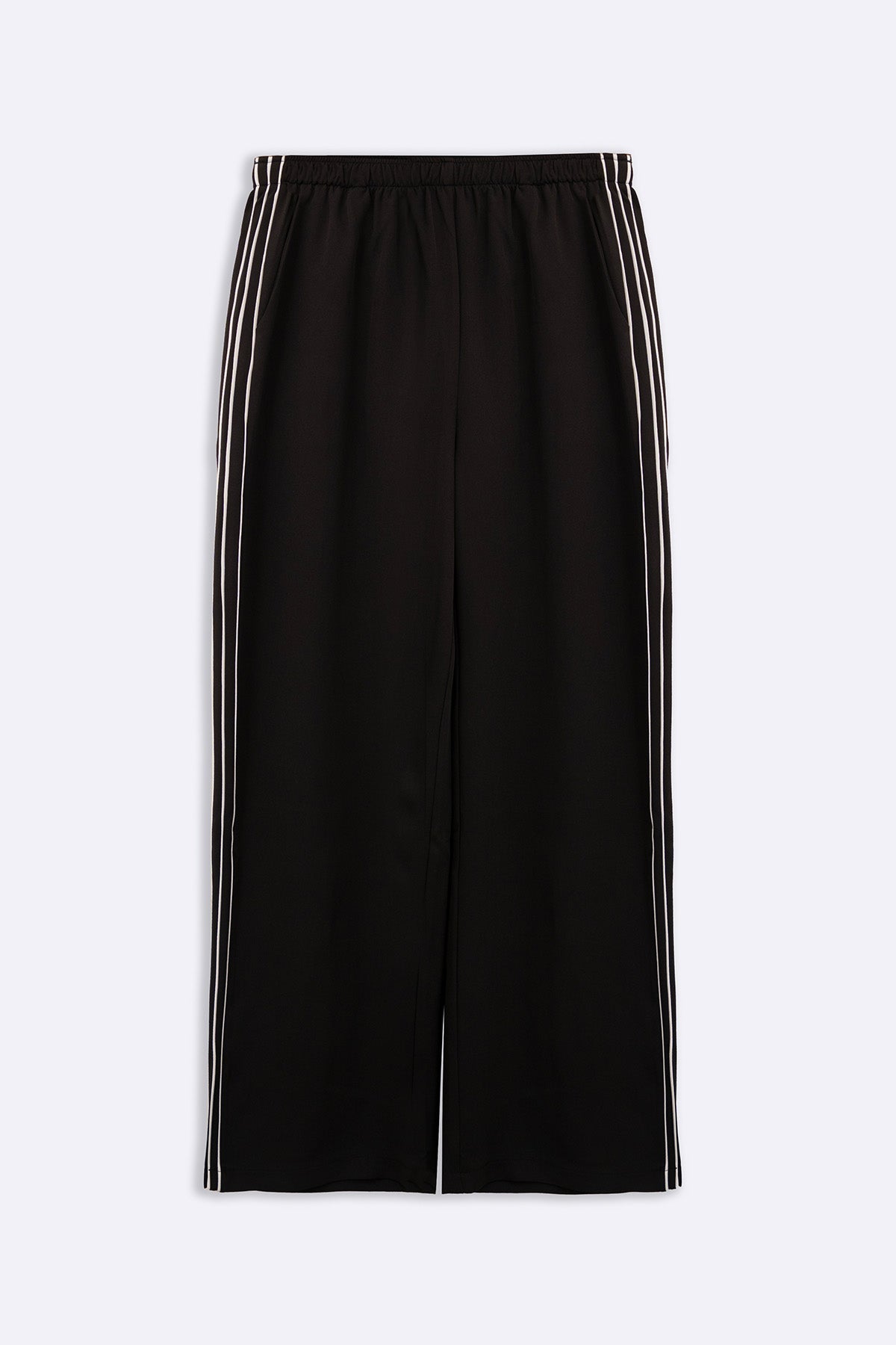 Design details: Pants with contrast side stripes and a short slit at hem. It has front side pockets and an elasticated waistband with drawstrings.