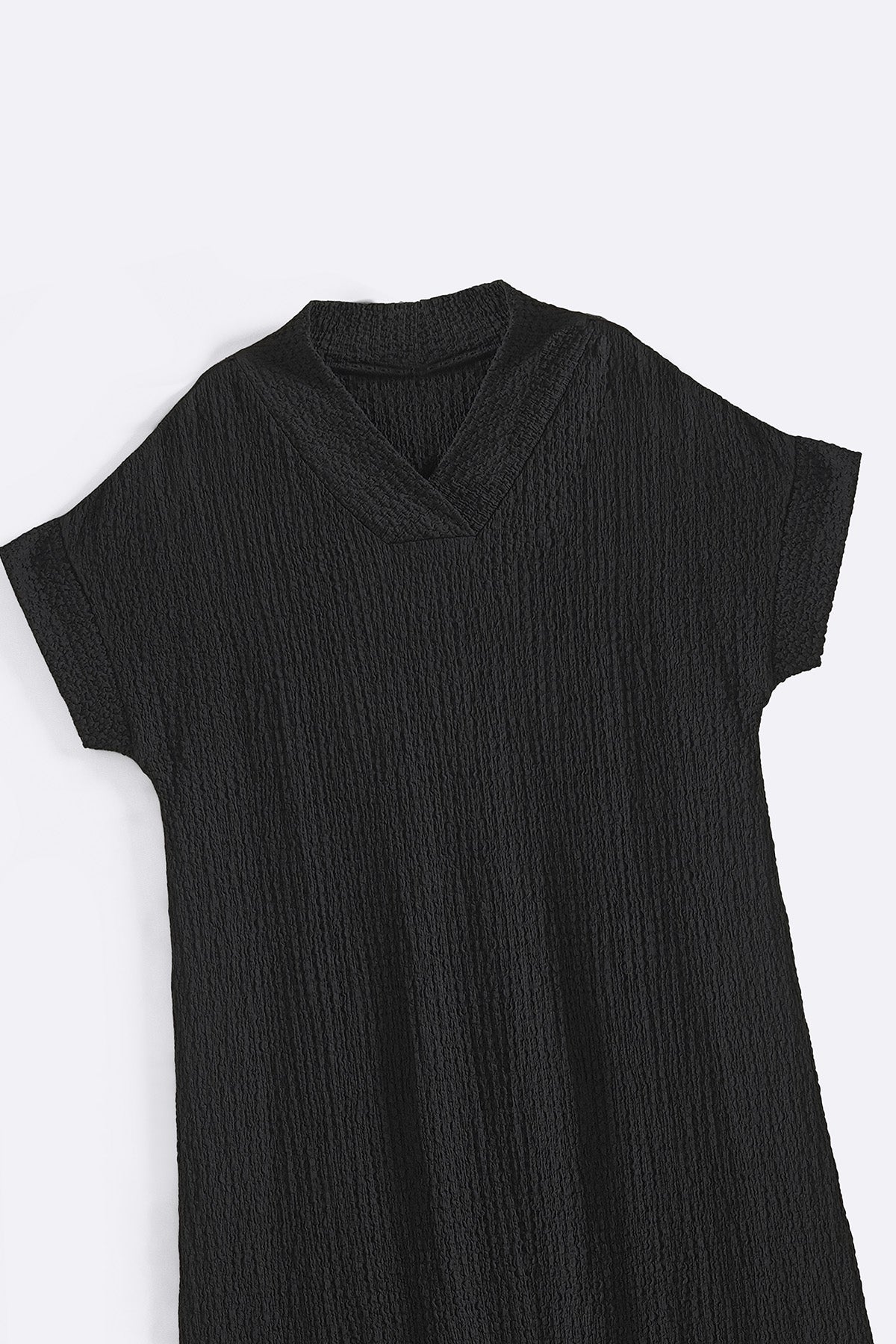 Design details:V-neck kimono styled dress with half sleeves and side vents.