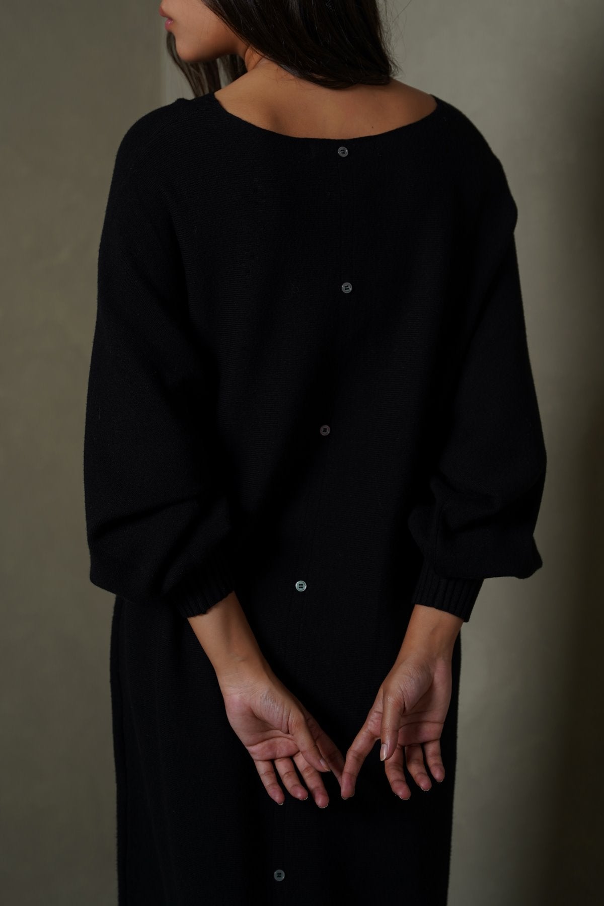 Design details: Seamless crew neckline and bottom hem with faux button at the back along with loose, soft cuffed sleeves.