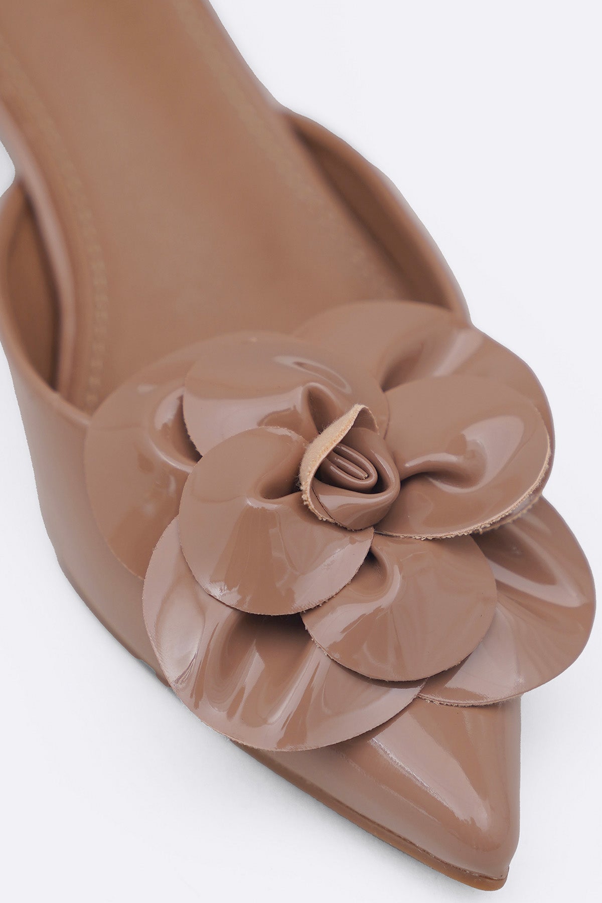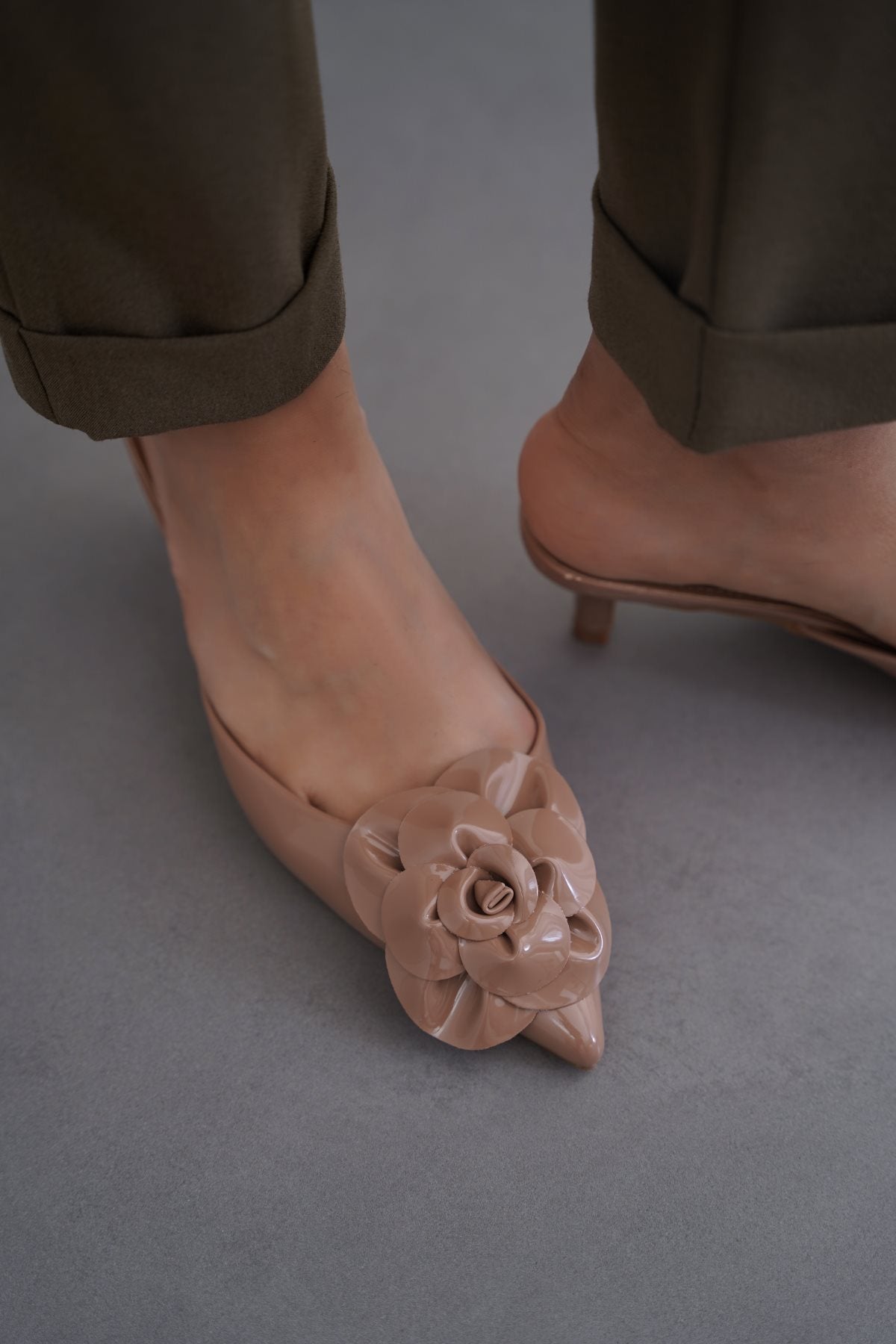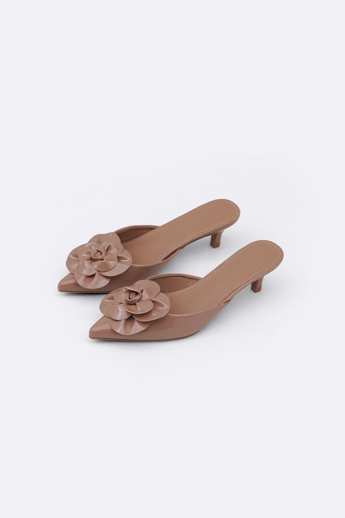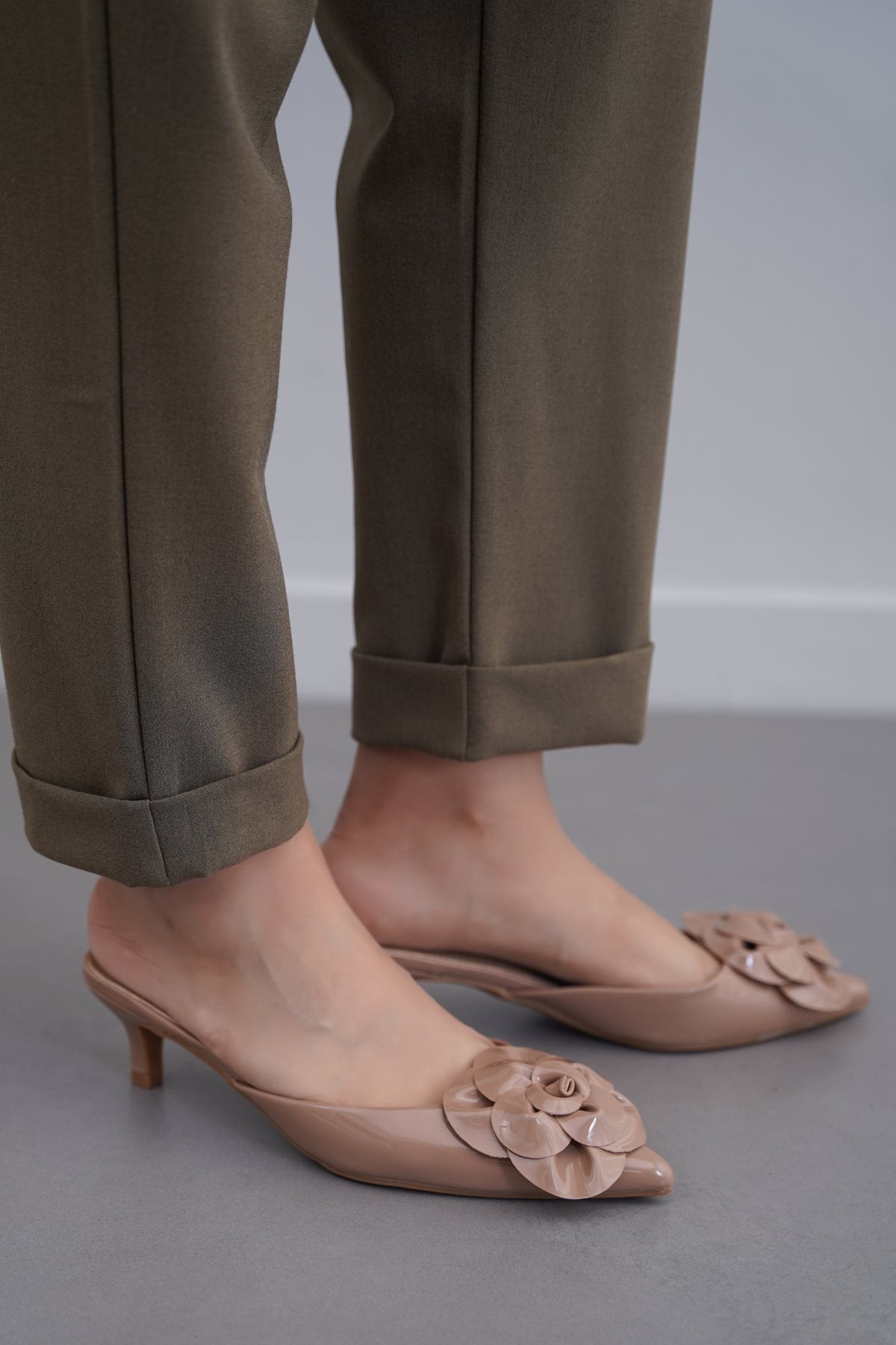 TAUPE FLOWER MINI HEELS