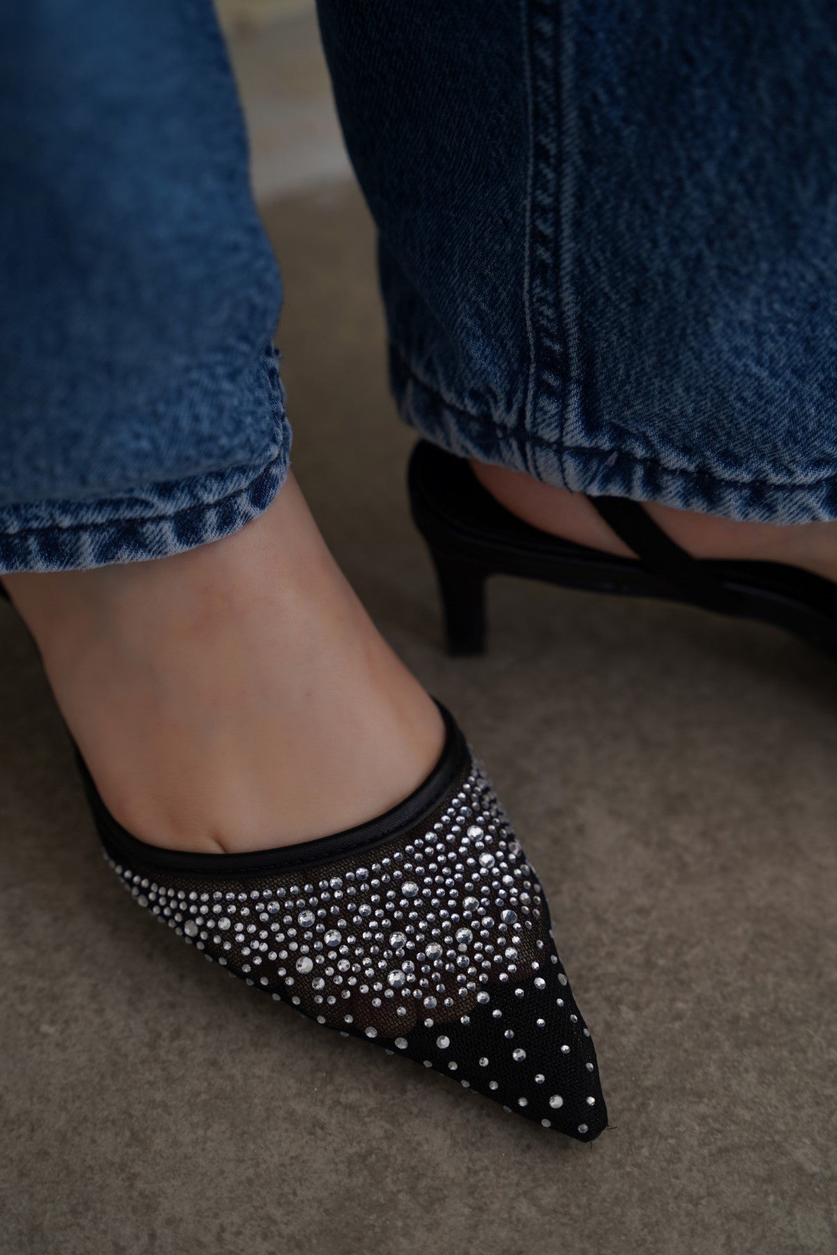 Crystal studded party heels with comfortable insole and anti-slip outsole.
