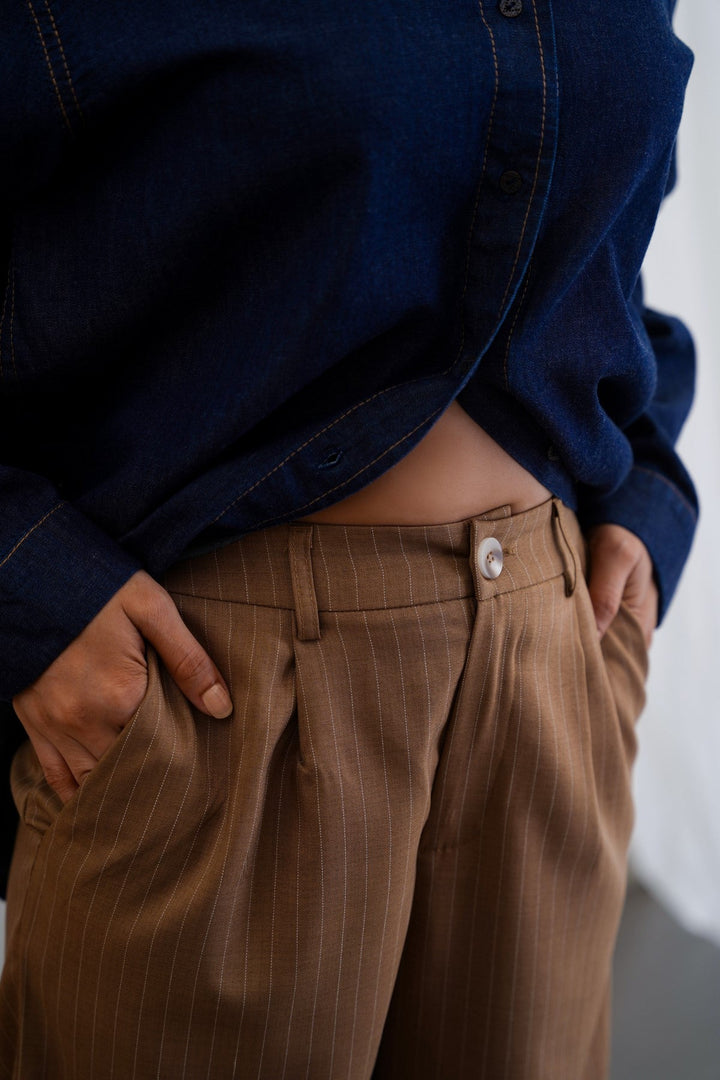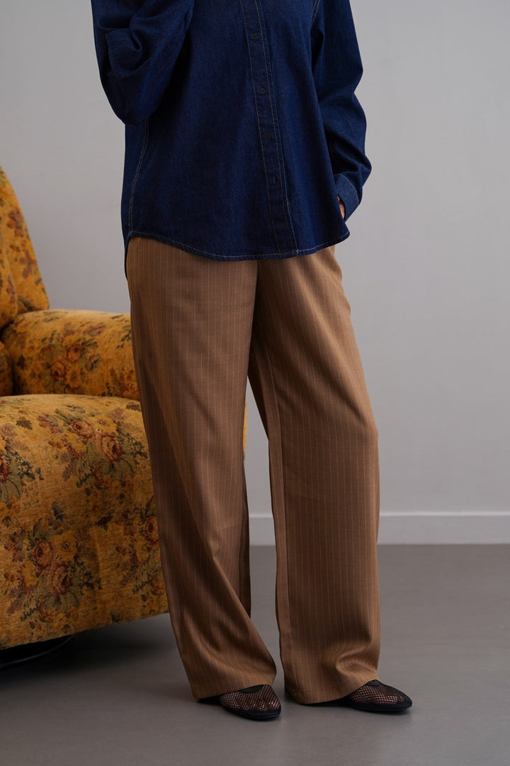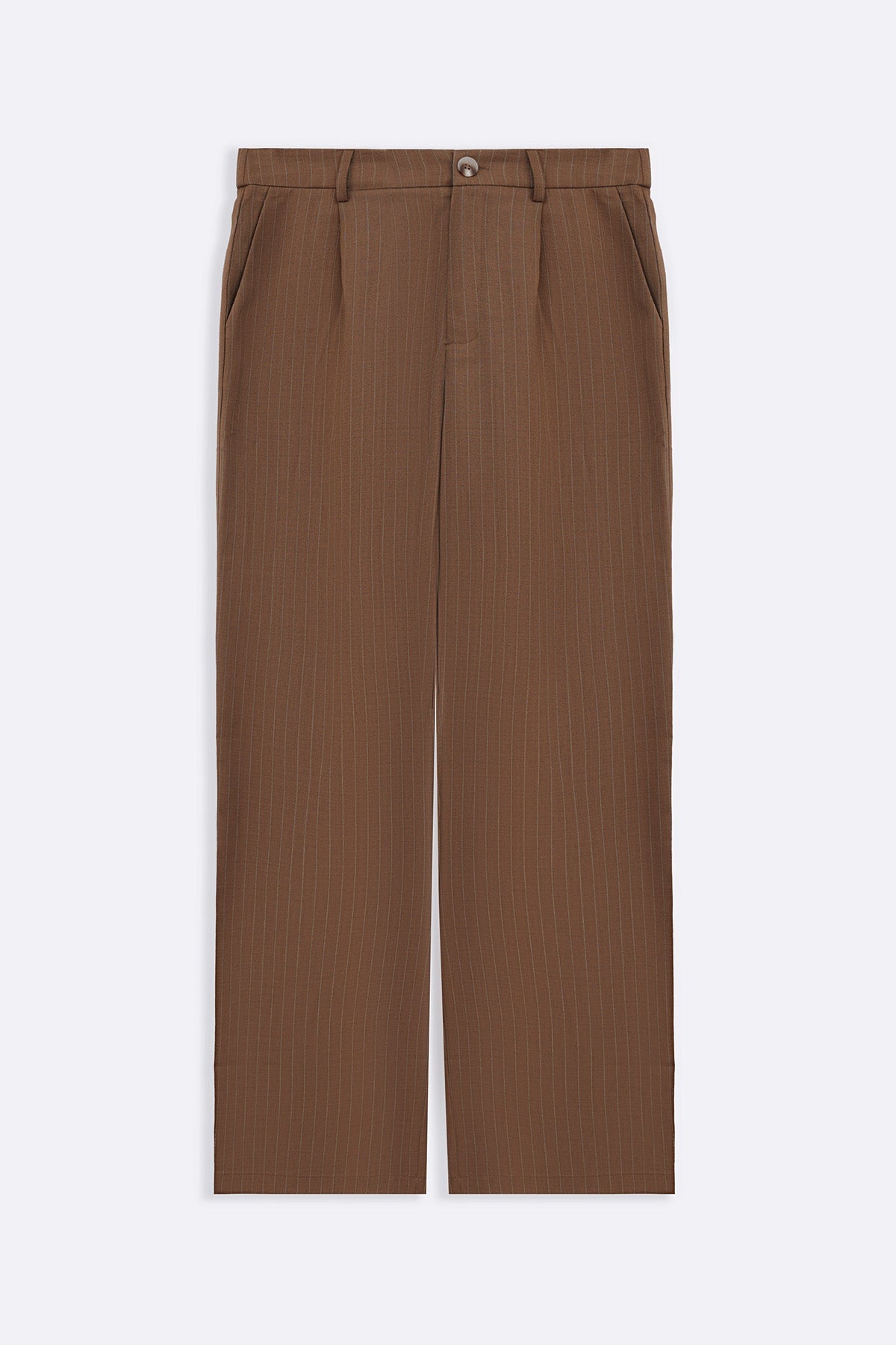 Design details: Pleated pants with front side pockets and an elasticated waistband at back.