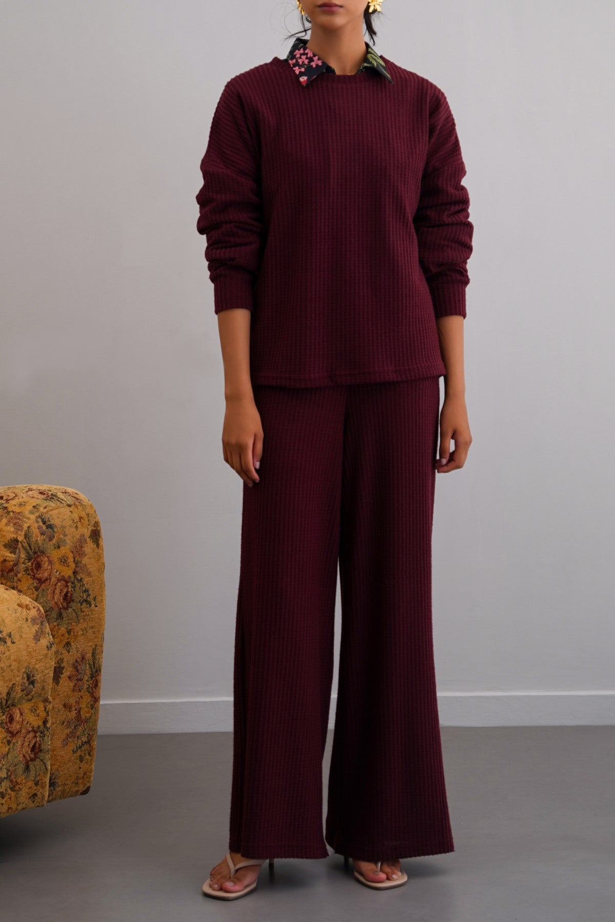 Design details: High waist trousers with an elastic waist band and straight leg.