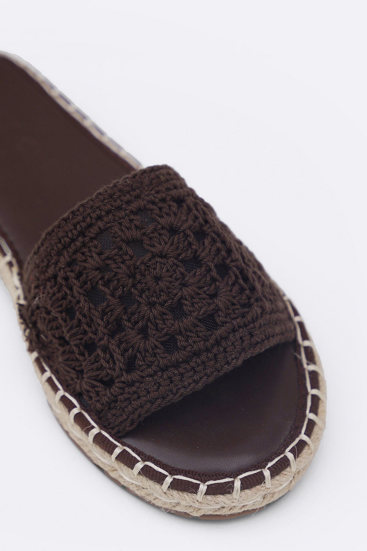 Woven espadrille slides with side stitch detail, soft insole and anti-slip outsole.