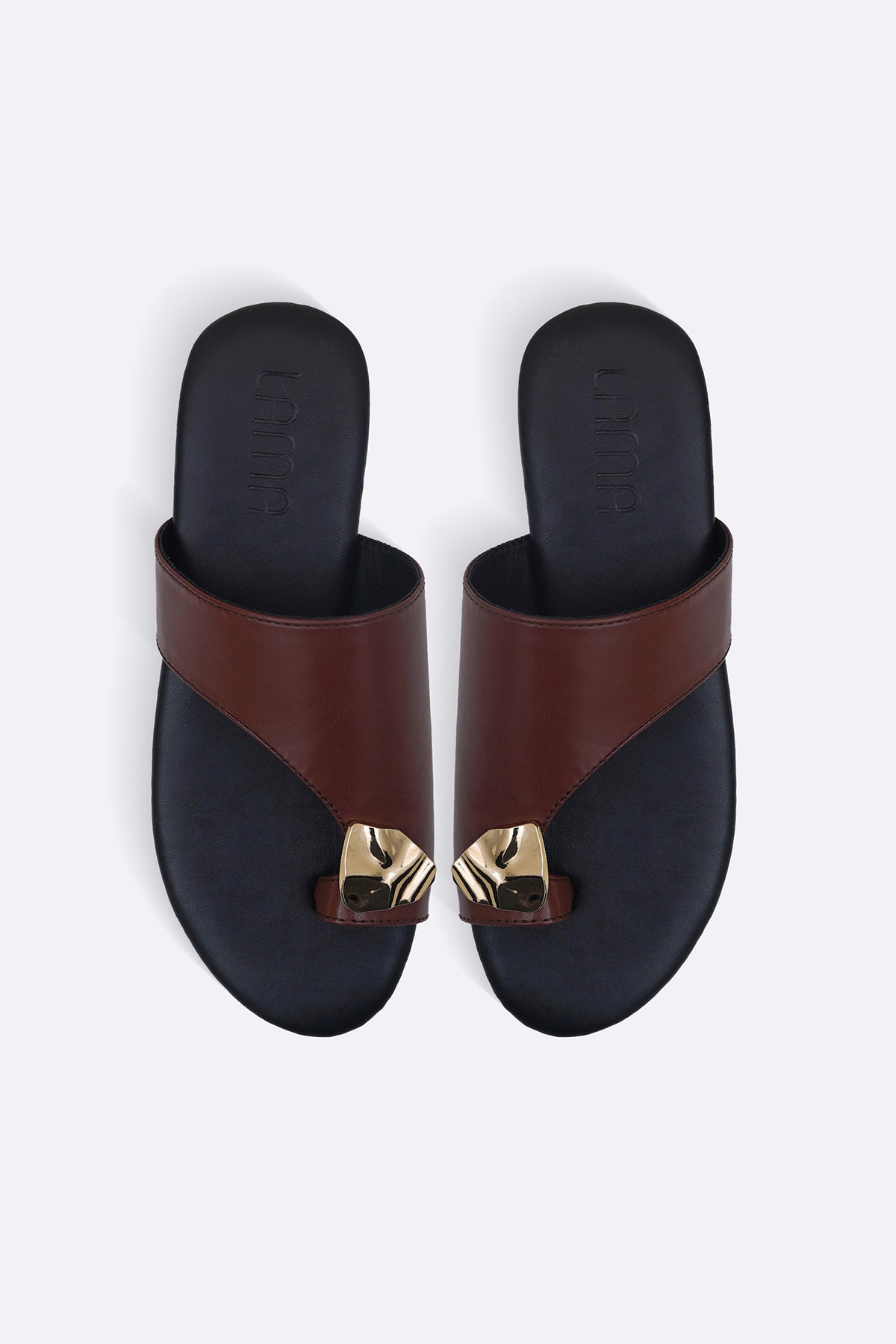 Festive slides with a gold trim on toe ring, cushioned insole for all day comfort and anti-slip outsole.