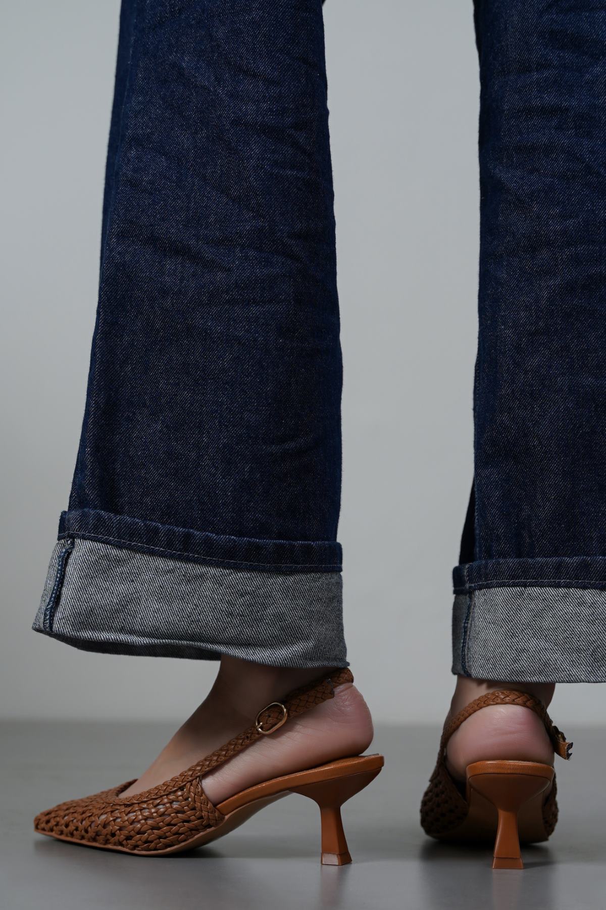 Woven slingback heels with buckle on ankle strap for size adjustment, comfortable insole and anti-slip outsole.