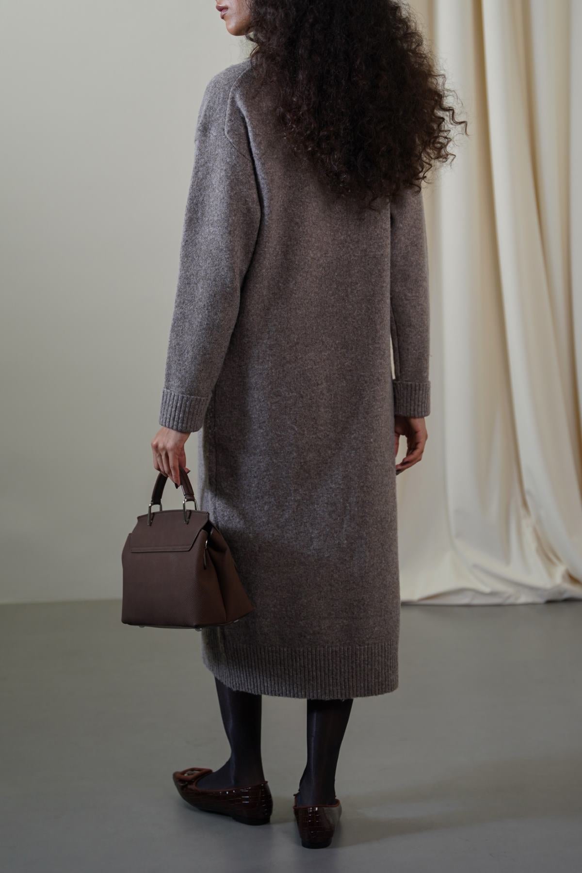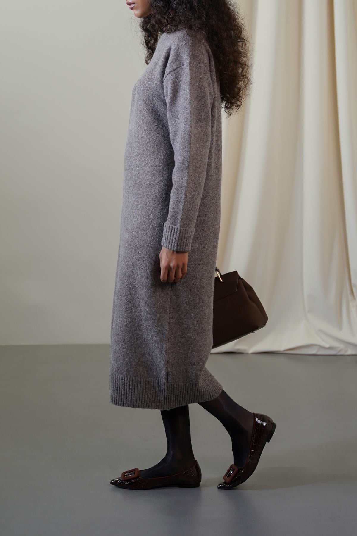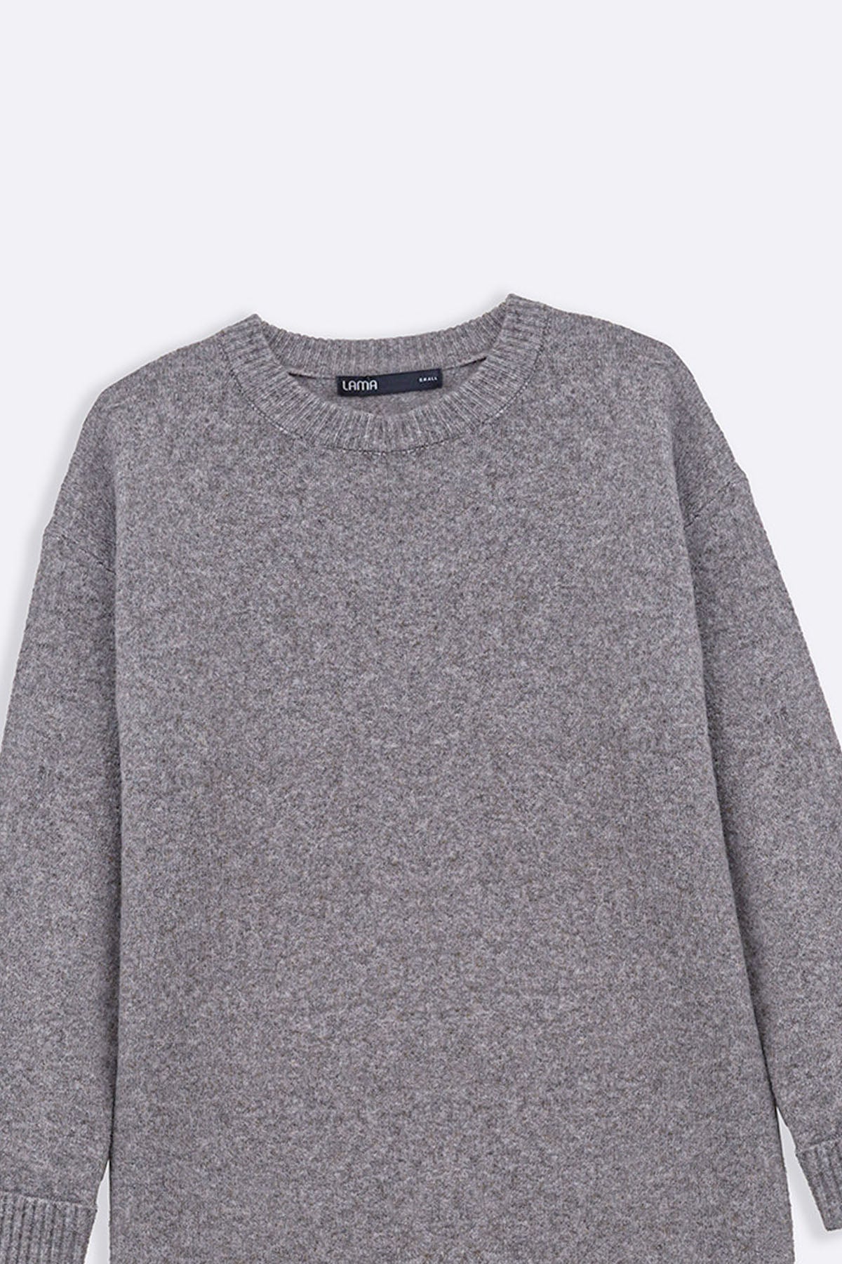 Design details: Crew neckline dress with long sleeves and rib detailing on hem, neck, and cuff.