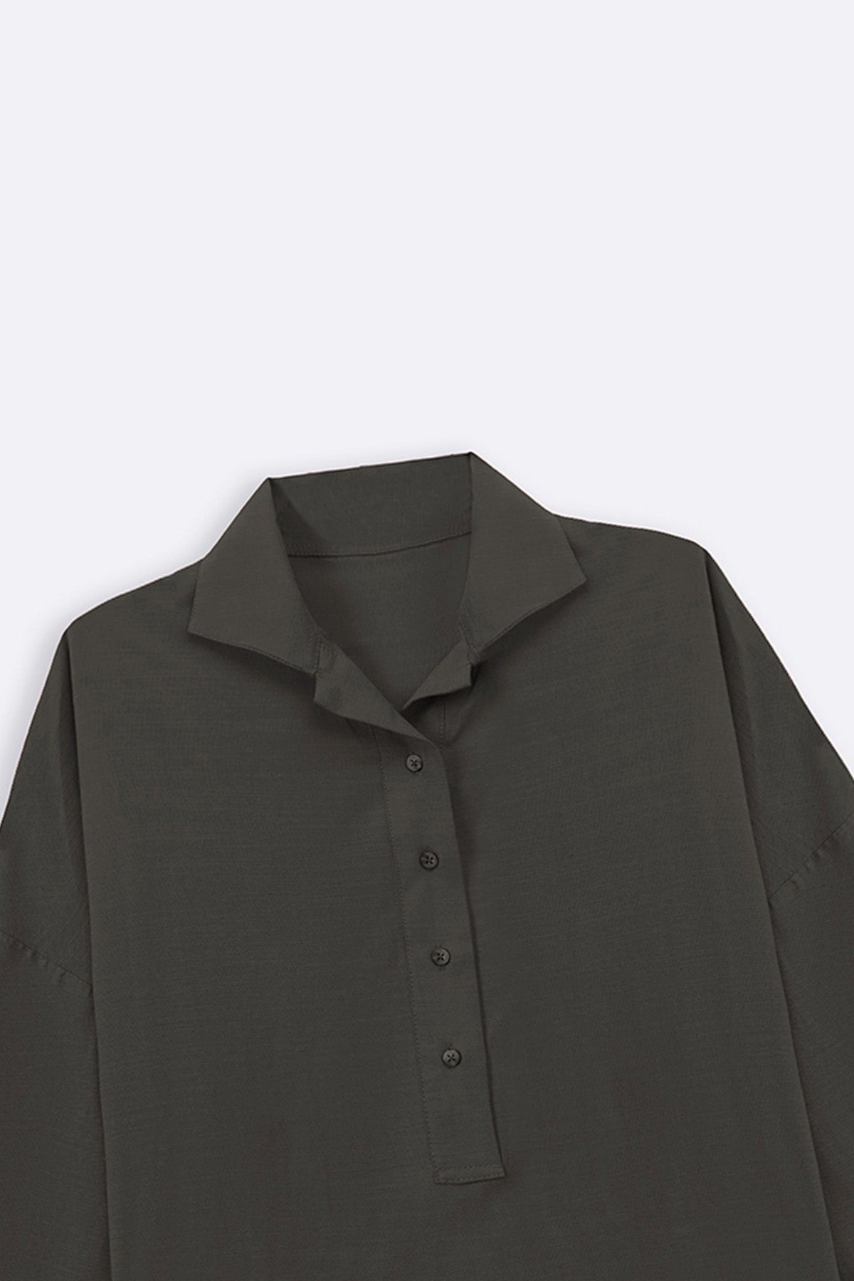 MOUSE GREY HALF-BUTTON SUMMER SHIRT