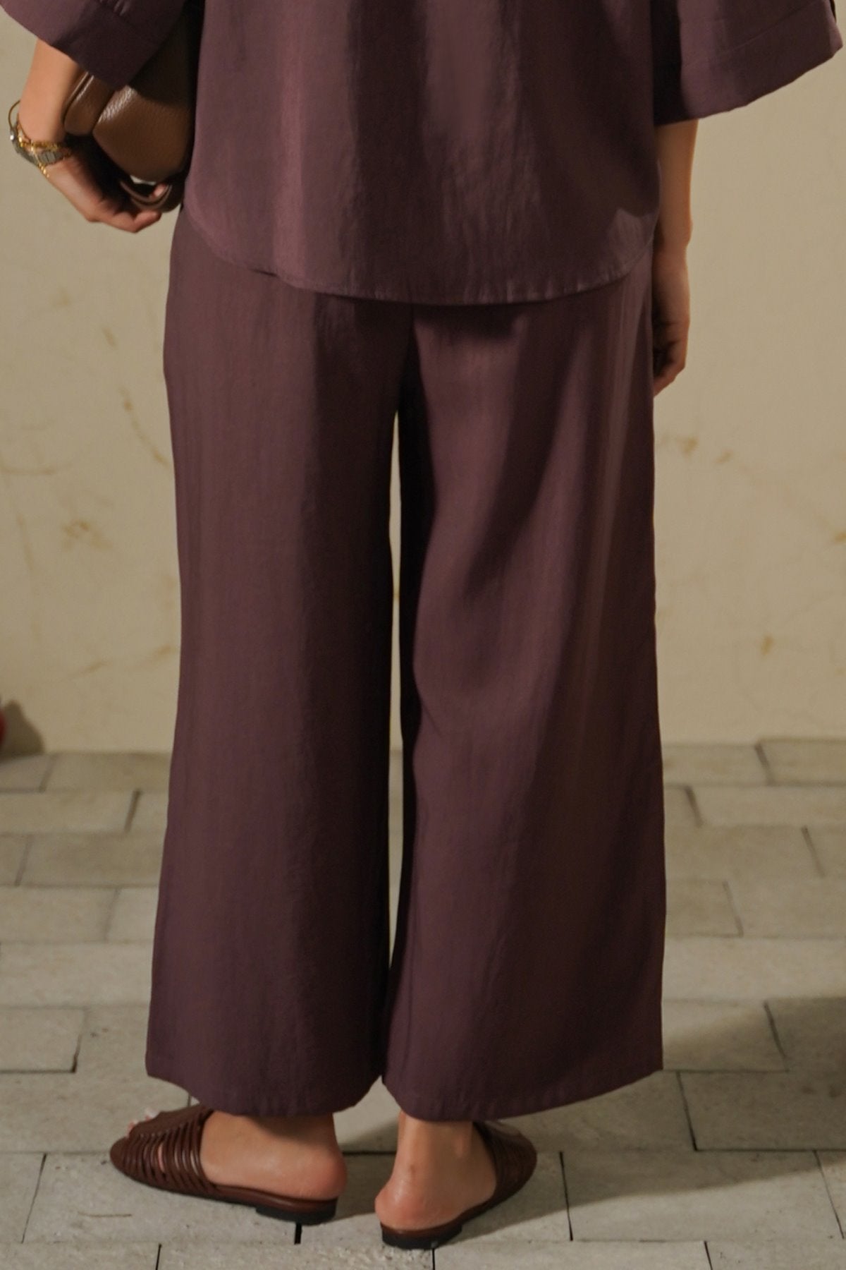 Design details: Culotte pants with front side pockets and an all around elasticated waistband with drawstrings.