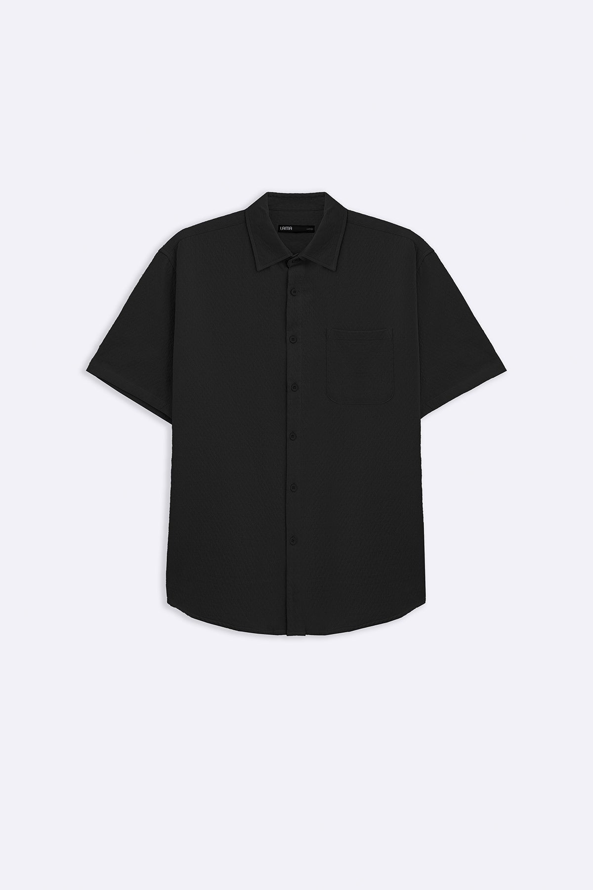 Design details: Cotton-jacquard button down shirt with a diamond pattern, chest patch pocket, collar and short sleeves.