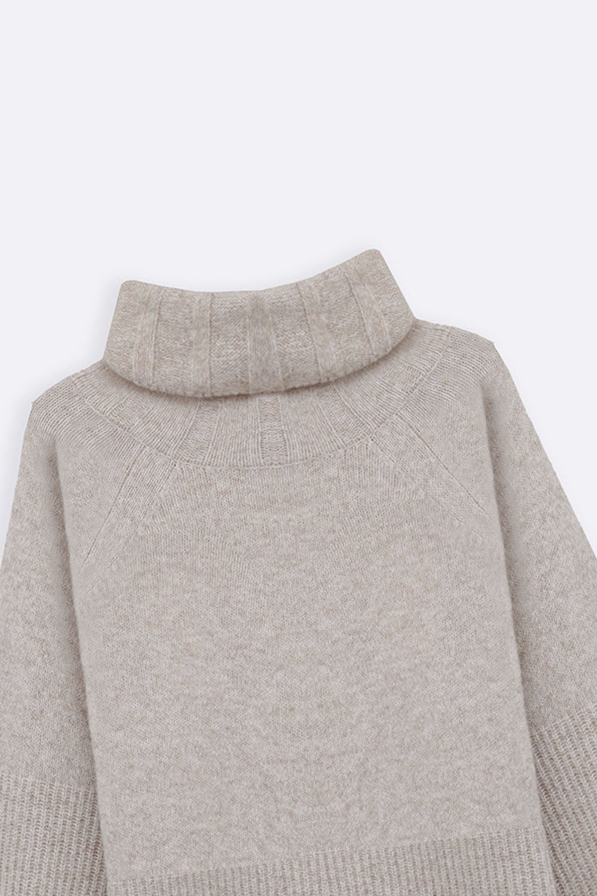 Design details: High neck sweater with long sleeves and subtle ribbed detailing on sleeves and hem.